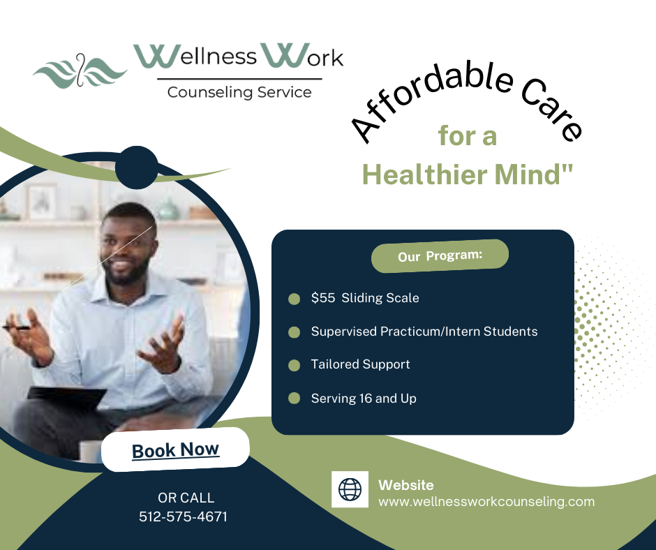 - Low-Cost Counseling: We believe in providing mental health care that’s accessible to everyone. Our program offers a sliding fee scale, starting at just $30 per session.